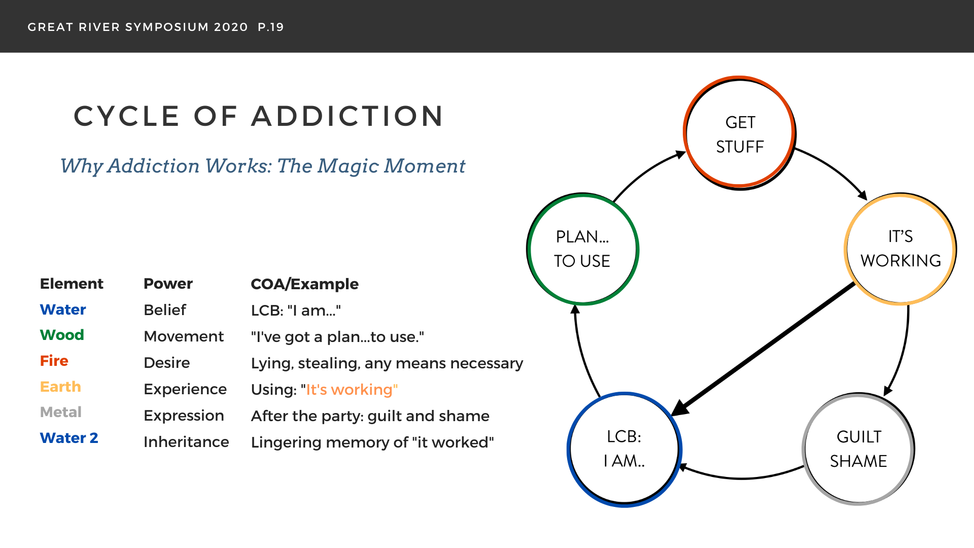 When it comes to the Cycle of Addiction, a dirty little secret is this: There’s a moment in that cycle when addiction works.